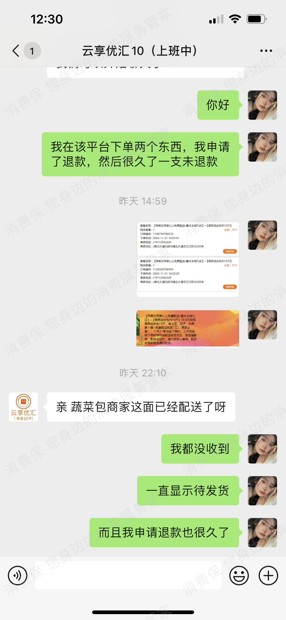 投诉云享优汇不发货也不退款,客服不回消息电话也不接