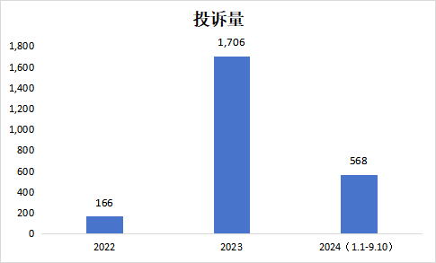 近年来,苹果手机在产品售价、质量和售后服务等方面屡遭投诉。根据中国电子商会旗下的消费服务保障平台消费保数据显示,截至2024年9月10日,平台共收到苹果手机相关投诉3,404件,其中2023年投诉量同比增长超9倍;累计涉诉金额超1,809万元,有效投诉解决率仅为3.85%。